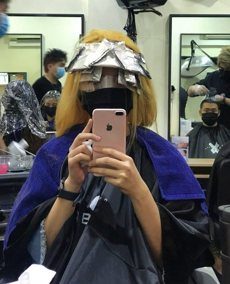 在某一天,刷IG的时候,看到hair label 理发屋的广告,看到他们的星空发色,很漂亮。于是,留言讯息他们说我有兴趣,询问价钱。但问了价钱之后,我没有立即的下预订,是因为我还在想是否要去,毕竟我也很少出门。呵呵呵~ 但是,我最后还是忍不住了,向他们预订时间染头发了。